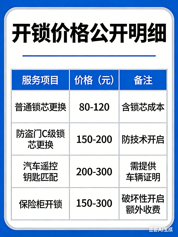 诚信经营是我们的核心宗旨,也是我们扎根团结湖多年的立足之本。不同于行业内部分机构“低价引流、后续加价”的套路,我们所有服务价格均公开透明,提前制定详细的报价标准,涵盖各类锁具开锁、换锁、修锁、锁芯升级等服务项目,无任何隐藏收费项。无论是普通室内门开锁、防盗门开锁,还是汽车锁开启、保险柜开锁,我们都会在上门前,根据你描述的锁具类型、开锁难度,明确告知你具体费用,开锁过程中不增加任何额外费用,开锁完成后,按照提前约定的价格结算,让你全程消费无忧、明明白白。
